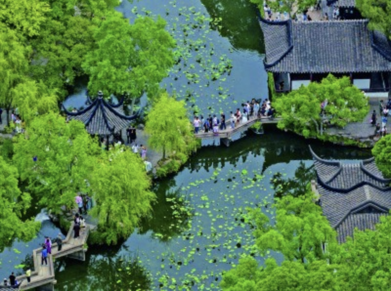 近年来,苏州不断推进“数字园林”建设,在园林整体数字建模等方面进行探索。图为游客在苏州拙政园参观游玩。图片来源:新华社