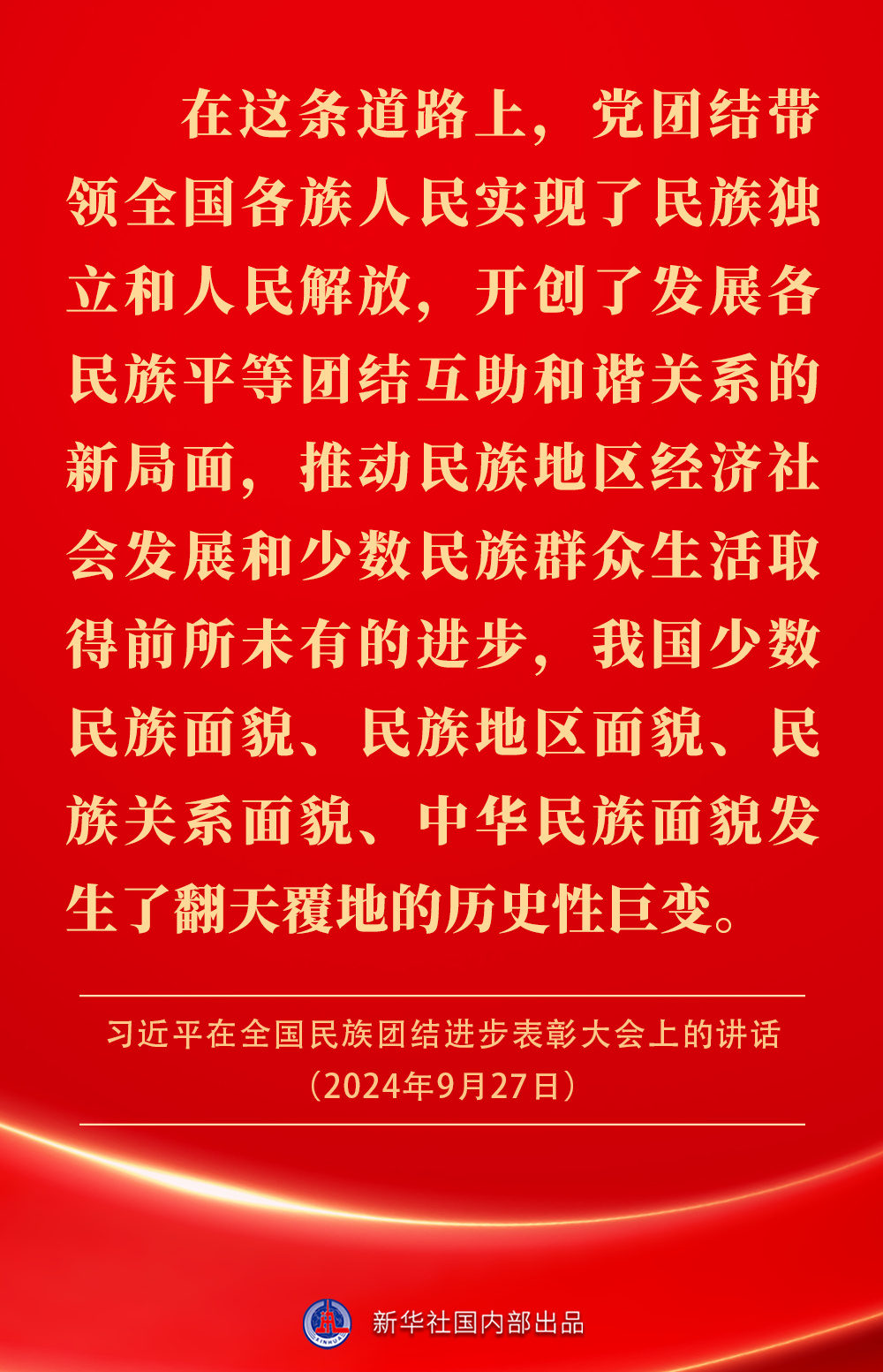 全国民族团结进步表彰大会9月27日上午在北京举行。中共中央总书记、国家主席、中央军委主席习近平出席大会并发表重要讲话,一起来看金句。