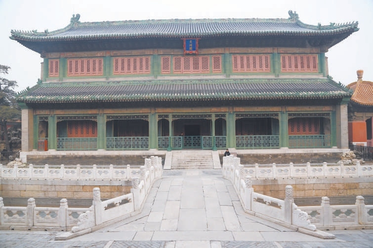 文渊阁作为天一阁在京城的复制放大版,二者在建筑规制、功能、理念上基本一致。天一阁坐北朝南,外看为两层,上层为一通间,下层为六间,暗合《易经》“天一生水,地六成之”,意为水星和日月会聚,蕴含以水避火的美好愿望,这也是当初范钦将藏书楼命名为天一阁的由来。为了凸显文渊阁作为皇家藏书楼的地位,将天一阁原来的重檐硬山顶改为重檐歇山顶,内部采取“明二暗三”的建造方式,在腰檐处增设暗层,民间传说紫禁城有“九千九百九十九间半房”,这“半间房”指的就是文渊阁最西侧上下楼梯连接处。