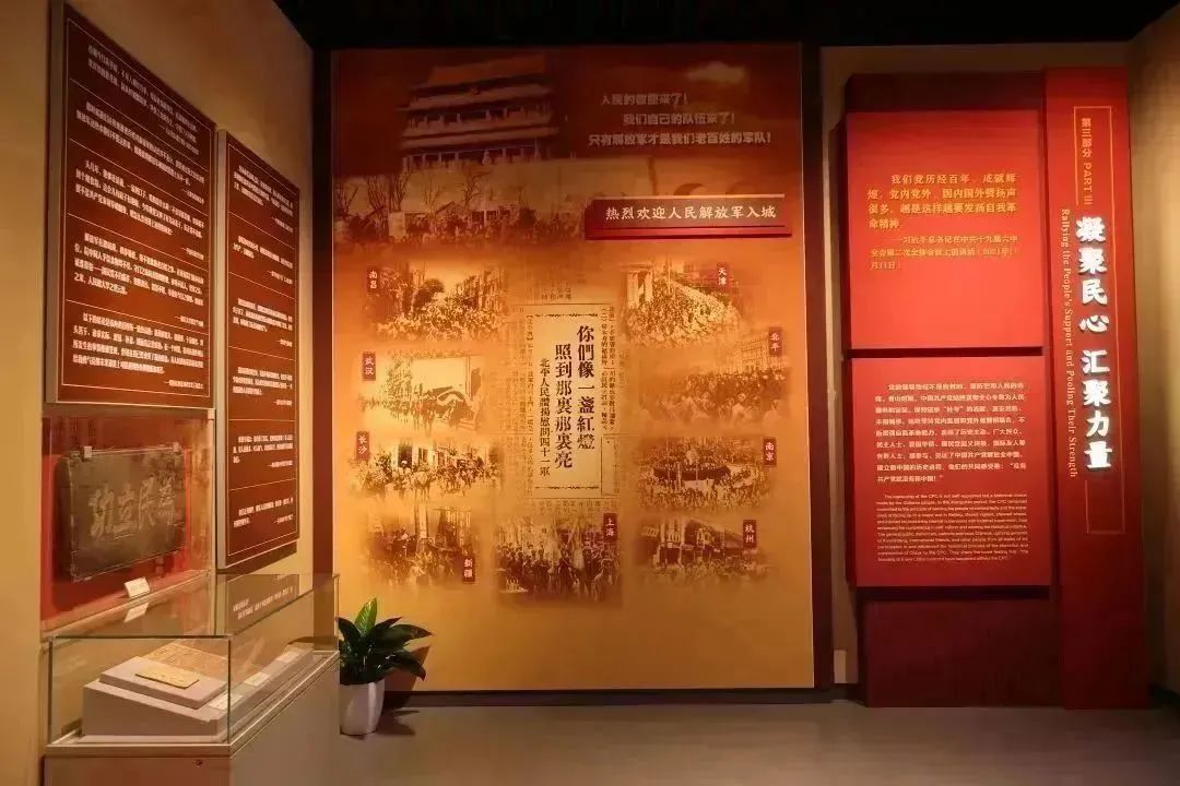 专题展览文物史料丰富,见证香山时期党的自我革命的光辉历程。本次专题展览在文物史料展示的选取上,注重突出“党的自我革命”专题,坚持以“馆藏为主”原则,广泛联系档案保管部门,积极动员社会各界捐赠,借展复仿制范围涵盖全国,通过深挖文物史料背后的故事,让文物带“情感”,有“温度”,“活”起来,是我馆建馆以来文物征集研究工作成果的一次集中展示。本次展览共展出文物史料260余件(套),不但有了数量上的较大提高,而且在文物等级上,也有了较大提升。本次展览重点展出了陈望道译《共产党宣言》、中共七届二中全会确定的12本干部必读书(精装本)、参加全国妇女代表大会的代表牛玉华的学习笔记、华北人民政府学习委员会汇集《干部学习文件》、1949年中共北平市委宣传部编印《中国共产党党章》、“南京路上好八连”使用的草鞋、纸糊信封和针线包、1949年伊莎白·柯鲁克在北平入城式上购买的毛主席宣传画等反映党的自我革命内容的珍贵文物文献,这些文物文献大多都是首次在京展出。展览还设置了50余处反映文物史料具体内容的数字化二维码,拓展展览内容,让观众更加深入了解文物史料背后的故事。此外,为真实还原历史,还从中央新影引进了“党的七届二中全会”“北平各界欢迎各方民主人士莅平”“庆祝中国共产党成立二十八周年诞辰”等珍稀历史影像资料,均为首次向社会公开。