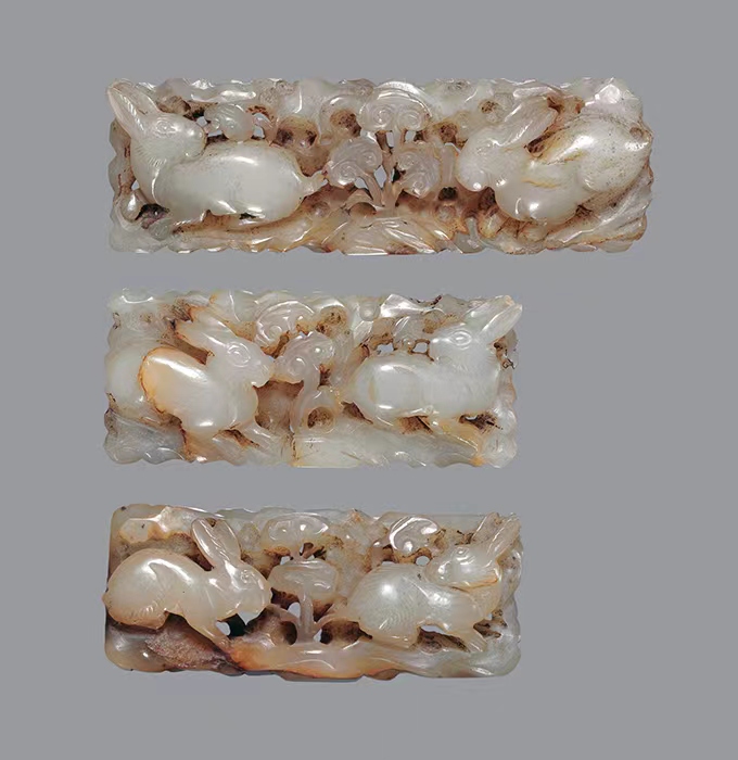 隋唐以后,传统的礼仪制度发生了改变,玉器的礼仪特征也逐渐江淡化,琮、璧、玦、璜等器类基本消失,出现了玉带、帽顶等标识身份的玉器种类。玉器的神秘色彩减退,逐渐成为一种祥瑞之器 并越来越多地作为俗世珍宝用于寻常生活。唐代社会开放,文化包容,扬州地区形成了治玉中心。这一时期的玉器工艺精美,风格格张扬,品类齐备,流行花卉、鸟兽、虫鱼、人物等纹饰。辽宋金元时期,玉器的世俗化倾向进一步加强,玉器以贴近生活、造型简简洁的装饰品为主,出现了巾环、绦带勾环、动植物摆件等品类。契丹、女真、蒙古等北方民族还流行与渔猎、游牧生活相关的春水水秋山玉,这类玉器刀法粗放,风格浑朴。明代玉器种类繁多,圆润敦厚,体大工精,形成了以北京、苏州、南京等地为首的治王玉中心。清代在宫廷文化的引领下,玉器精细的工艺技巧与繁缛的形式美均达到前所夫有的高度。