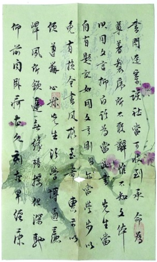 夏承焘往来书信极具艺术性,还因为夏承焘有一手好字。美文行云流水,书法神采动人,相得益彰。夏承焘从1929年开始有意识地研习书法。他先从篆书及行草入手,再写大字《文殊般若经》,也临过《集王羲之书〈圣教序〉》和孙过庭《书谱》。后来对沈曾植、马一浮的书法也有所取法。有人说,夏承焘是词仙,他的书法仿佛被词的仙气笼罩着。翻阅一通通信札,可以见证夏承焘书法风格的变化,二十岁的稚嫩,三四十岁的成熟,五十岁的变法,七八十岁的人书俱老。夏承焘书信透露出的书卷气,与中国传统笺纸的制作、书信礼仪的规矩、书信文字的表达,完美结合在一起,堪称中国现代文人书法的经典。