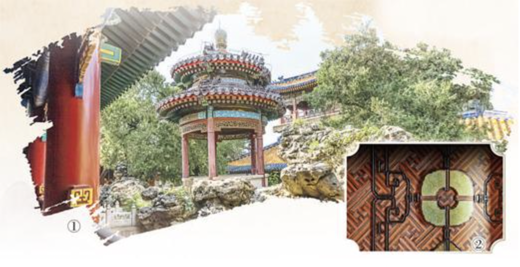 图①为宁寿宫花园内的碧螺亭,是国内仅见全部采用梅花主题为装饰元素的古代建筑。图②为宁寿宫花园内经过修复的竹丝镶嵌落地罩(局部)。摄影:陈敬哲