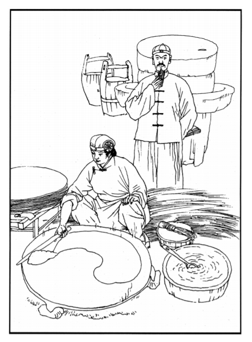 这时那女子方才知道背后不知啥时站了个生人在喝彩。她毫不扭捏,大方地说道:“这位客官,我的手艺,要比起轩辕黄帝的夫人嫘祖,还差得远哩!她才是中国第一个会烙煎饼的女人!”接着又说:“请客官尝尝我烙的煎饼味道如何?”说着随手挑过一张滚热的煎饼,向乾隆甩去。乾隆赶忙双手接着,不知从何下口。只听那女子说道:“饭桌上有盐豆子,卷上吃吧!”这煎饼趁热才宣和,卷上盐豆子那真是奇香无比。乾隆一连吃了三张,打了个饱嗝,连道几声“谢”字,转身往龙舟方向而去。